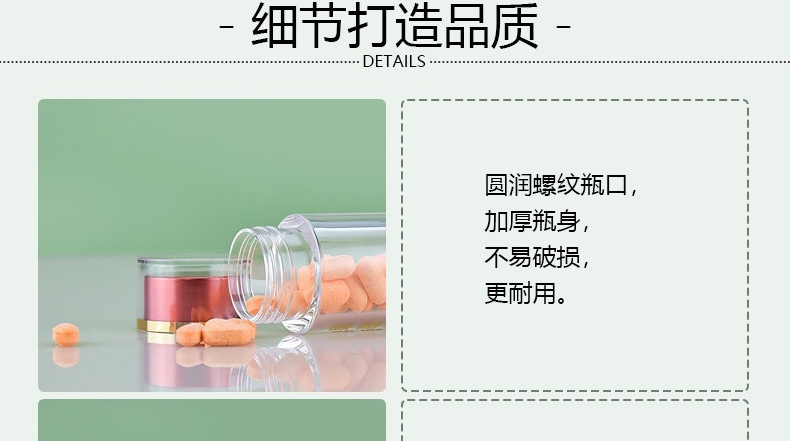 滄州明潔專注于生產(chǎn)20ml圓柱瓶,保健品瓶,保健品含片瓶,膠囊分裝瓶,中藥粉瓶,藥片瓶,膠囊瓶,藥丸瓶,軟膠囊瓶,壓片糖果瓶,保健品塑料瓶,避光塑料瓶,ps保健品瓶,固體片劑瓶,產(chǎn)品規(guī)格多,外觀新穎,彰顯大氣。