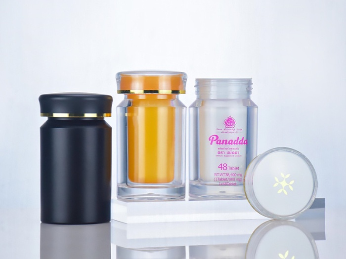 亞克力瓶身+金色鋁瓶蓋+外套PP袋(防刮擦)