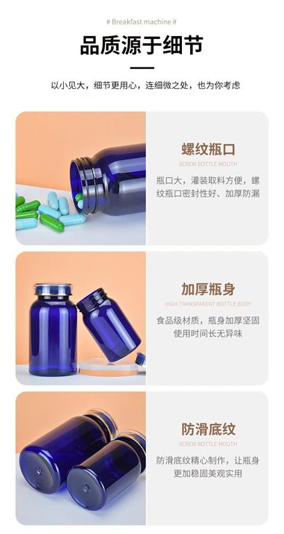 滄州明潔生產(chǎn)銷售藍色保健品瓶,150ml膠囊瓶,皇冠蓋塑料瓶,膠囊瓶,藥片瓶,含片瓶,中藥丸瓶,軟膠囊瓶,粉劑粉末瓶,pet塑料瓶,圓肩瓶,vc瓶,鈣片瓶,避光保健品瓶,醫(yī)藥包裝瓶,產(chǎn)品規(guī)格眾多,款式新穎。