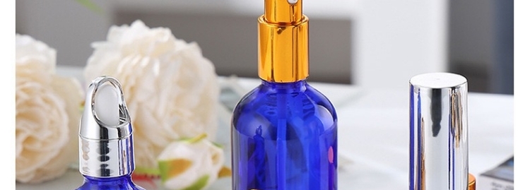滄州明潔專注于藍色精油瓶,乳液瓶、滴管噴霧瓶、化妝品分裝瓶、精華液瓶、香水瓶、走珠瓶、膏霜瓶、眼霜瓶、面霜瓶、香薰瓶、面膜瓶、滴管瓶等,提供蒙砂、真空電鍍、噴涂、絲印、高溫、燙金燙銀等加工服務。