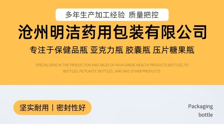 滄州明潔生產(chǎn)銷(xiāo)售亞克力膠囊瓶,蜂膠軟膠囊瓶,保健品分裝瓶,子彈頭瓶,鈣片瓶,維生素VC瓶,鈣片咀嚼片分裝瓶,軟膠囊瓶,壓片糖果瓶,中藥丸瓶,避光塑料瓶,固體片劑瓶,塑料藥瓶,產(chǎn)品規(guī)格多,外觀新穎,彰顯大氣。