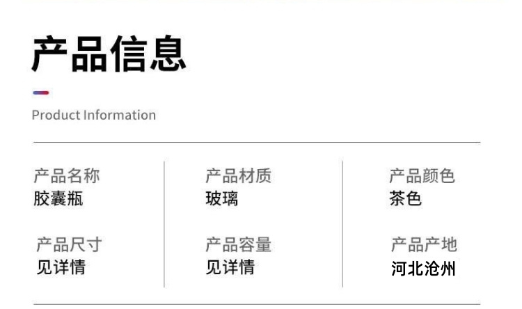 滄州明潔關注于蟲草分裝瓶,棕色膠囊瓶,遮光藥丸瓶,茶色膠囊瓶,棕色膠囊瓶,玻璃密封瓶,棕色廣口瓶,避光膠囊瓶,廣口藥品瓶,茶色玻璃膠囊瓶,茶色片劑瓶,棕色藥瓶,保健品玻璃瓶,廣口藥品瓶,藥片瓶,產(chǎn)品規(guī)格多,款式新穎,品質(zhì)過硬。