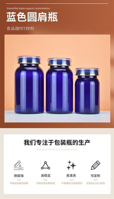 滄州明潔生產(chǎn)銷售藍色保健品瓶,150ml膠囊瓶,皇冠蓋塑料瓶,膠囊瓶,藥片瓶,含片瓶,中藥丸瓶,軟膠囊瓶,粉劑粉末瓶,pet塑料瓶,圓肩瓶,vc瓶,鈣片瓶,避光保健品瓶,醫(yī)藥包裝瓶,產(chǎn)品規(guī)格眾多,款式新穎。