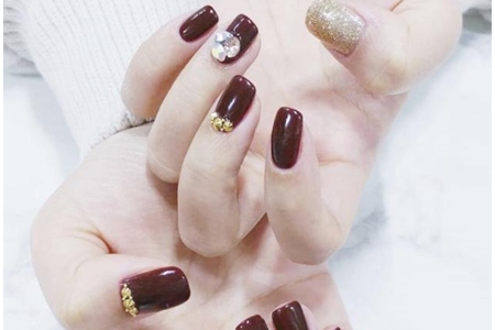二、酒紅色金鉆美甲