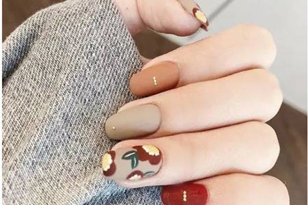 奶茶色_溫柔,而且淺色很顯皮膚白,棕色和灰色的搭配,用小珍珠做裝飾讓指甲更有活力。添加雅致的花朵繪畫,整個(gè)美甲顯得豐富又有層次感。