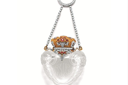 西方的婚禮上,新娘會接受來自好友親人的珠寶禮物,它們同樣珍貴_。這_愛心形狀的香水瓶子有著精美的花紋,蓋子是一個皇冠形狀,金黃色上鋪滿鉆石和紅寶石,奪目亮眼,掛繩與圈環(huán)上面同樣是鉆石彰顯尊貴。