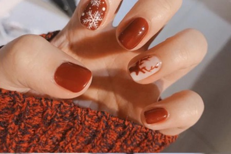 酒紅色迷離性感的顏色可以讓指甲變得光澤閃亮,圣誕節(jié)元素的添加更是錦上添花。白色的雪花只要畫出白色斑點(diǎn)_可以以假亂真,六角雪花看起來(lái)復(fù)雜其實(shí)很好畫。紅色鹿角分叉開(kāi),裝扮圣誕氣氛。